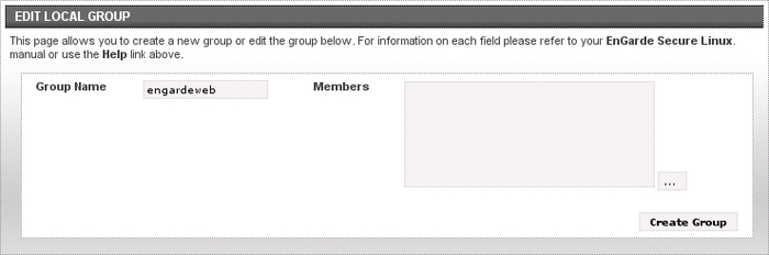 ![]() | Your EnGarde Secure Linux system has several users and groups associated with the operating system and occasionally you will see them listed in the Guardian Digital WebTool. As a rule of thumb any user or group with an UID/GID of less then 500 is a system group. Never delete a system user or group unless you know what you are doing! |