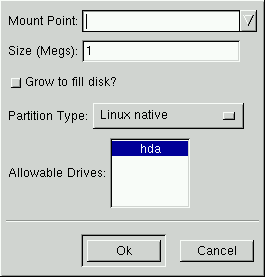 To add a new partition, select the Add button. A dialog box will appear (see Figure 4-6).