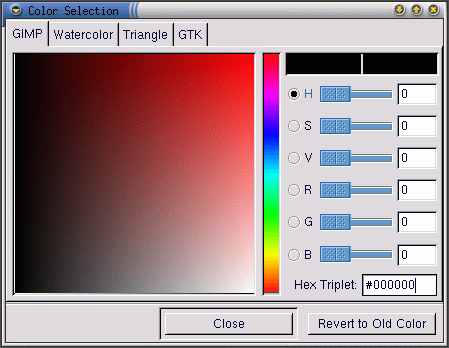 Cliccate sul box del colore attivo per visualizzare la finestra di dialogo Color Selection: