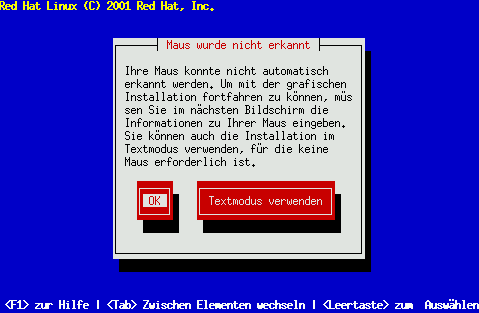 Wenn der Bildschirm Maus wurde nicht erkannt erscheint (siehe Abbildung C-1), konnte das Installationsprogramm Ihre Maus nicht korrekt identifizieren.