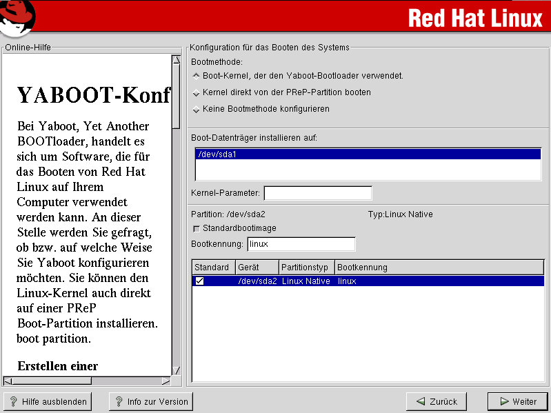 | Zurück | Kapitel 4. Installation von Red Hat Linux | Nach vorne |