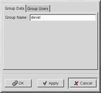 To view the properties of an existing group, select the group from the group list and click Properties from the button menu (or choose Action => Properties from the pull-down menu). A window similar to Figure 19-3 will appear.