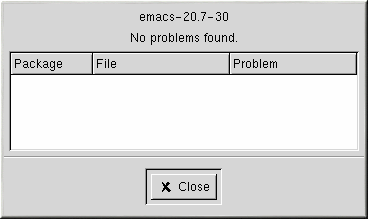 Choosing the packages to verify is like choosing the packages to query. Select the packages in the display window and use the Verify button on the toolbar or from Packages => Verify on the menu. A window opens like the one in Figure 26-10.