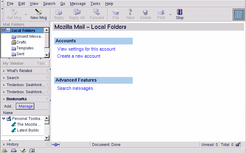 Open Mozilla Mail by clicking on the Mail icon in the lower left corner of the Mozilla Navigator screen.