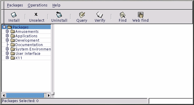 Open Gnome-RPM (From a GNOME desktop, go to Main Menu => Programs => System => GnoRPM; In KDE, go to Main Menu => GNOME Programs => System => GnoRPM. In either desktop, you can use the run tool (In GNOME, Main Menu => Run.... In KDE, Main Menu => Run command) and type gnorpm.