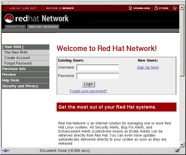 With the Red Hat Network Software Manager, you can download additional packages, system enhancements and bug fixes, and the latest security tools. You can upgrade some or all outdated packages, manage your hardware profile, and more.