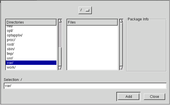 Under Directories, scroll down and double-click on /var. This will display a new list of directories in the Directories box.