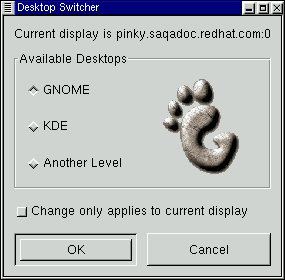 I know I have both KDE and GNOME on my Red Hat Linux system, but how do I change from one environment to the other?