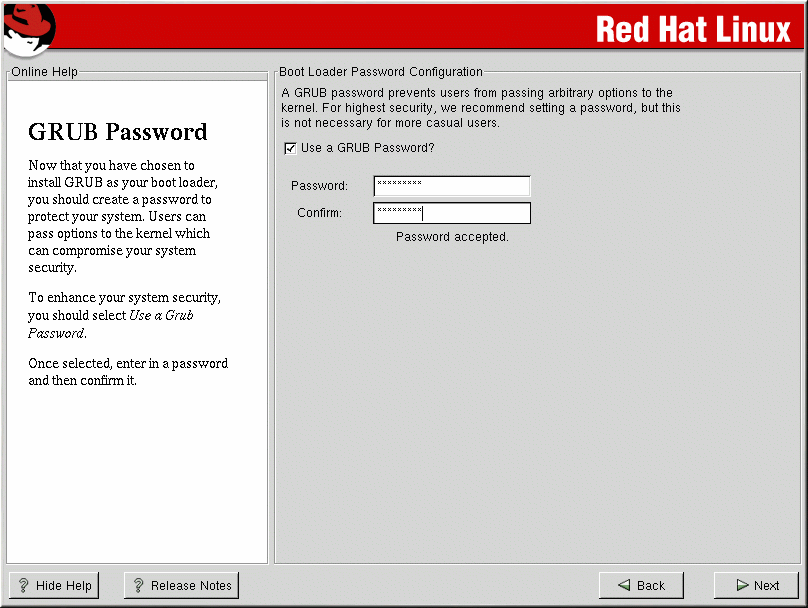 To enhance your system security, you should select Use a Grub Password.