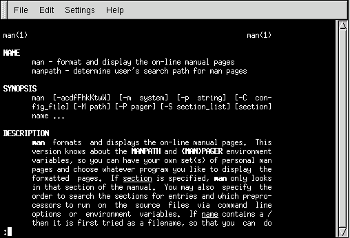 Figure 10-1. Reading a Man Page at the Shell Prompt